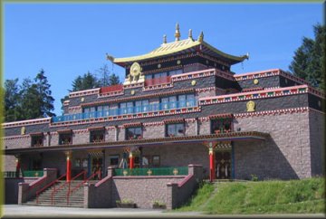 He wanted to find an auspicious date for the official opening of the temple, sometime in summer, and opted for 8.8.88 for the secular opening and celebrations, as the number eight is considered auspicious and balanced by Tibetans and Chinese, but also chose a day for the spiritual consecration, to be led by the Tai Situpa, based on Tibetan astrology. Finishing the temple was a cliff-hanger, probably only made possible by Rinpoché’s constant presence and pressure. The temple roof was to be coated with a special, highly-resistant covering that gave it a golden hue. The last spraying of this was still happening by floodlight on the night before the opening ceremony. Rinpoché wanted the opening to be a signal event—a festival with artistic and other presentations lasting for some days. To this end, marquees were erected and various performers invited. The consecration ceremonies could have been performed by no one better than the Tai Situpa: for Rinpoché, that was perfect. For the secular opening, he invited the then Sir David Steel, later to become Lord Steel of Aikwood and 1st Presiding Officer of the Scottish Parliament. The latter, a very well-known politican and public figure, had proved a good friend and advisor to Akong Rinpoché: they had met through the good auspices of Lord Tanlaw.